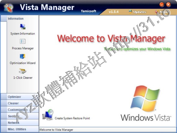 • Yamicsoft Vista Manager v1.1.6 英文正式版(優化及設置 Windows Vista的系統工具軟體)