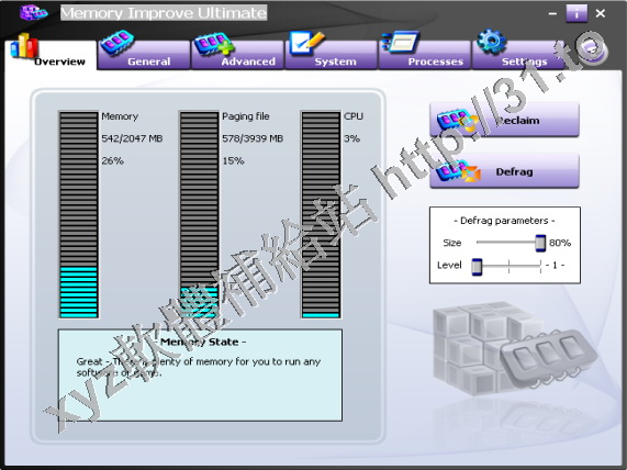 的記憶體空間使系統的程式運行得更快更穩定。它可以實時地查看系統記憶體,CPU使用情
